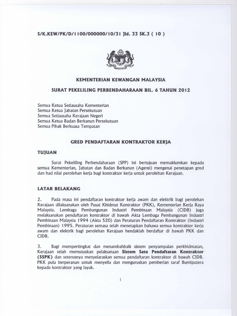 Surat Pekeliling Perbendaharaan Bil 6 Tahun 2012 Pdf